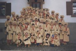 2001 wurde unser neues Häs der Öffentlichkeit vorgestellt. Seit dem besteht es aus einer beigen Kniebundhose, einer beigen Jacke, roten Kniestrümpfen, beigen Clogs, einem Ledergürtel mit kleinen Holzkochlöffeln und Schellen, einem roten Halstuch mit gesticktem Logo sowie einer Holzmaske mit der Stoffkopfbedeckung in Form eines Kochlöffels. Siehe auch Fotos.