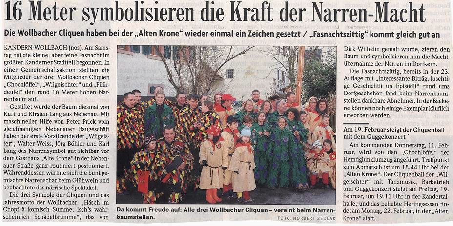 Artikel in der Badischen Zeitung vom 05.03.2011 zum Narenbaumstellen/Hemdglunki