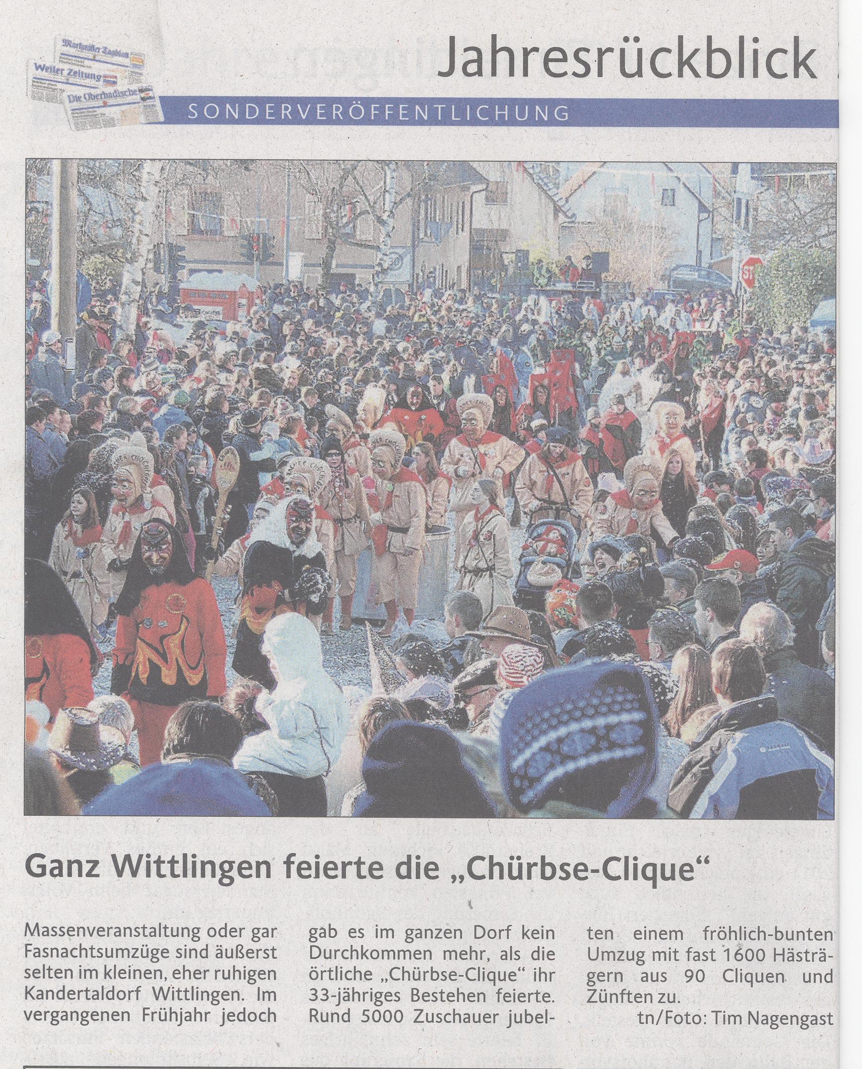 Artikel in der Oberbadischen vom 31.12.2011 zu Jubi-Umzug Wittlingen
