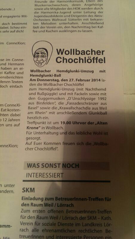 Artikel in der Badischen Zeitung zu unserem Hemdglunki 2014