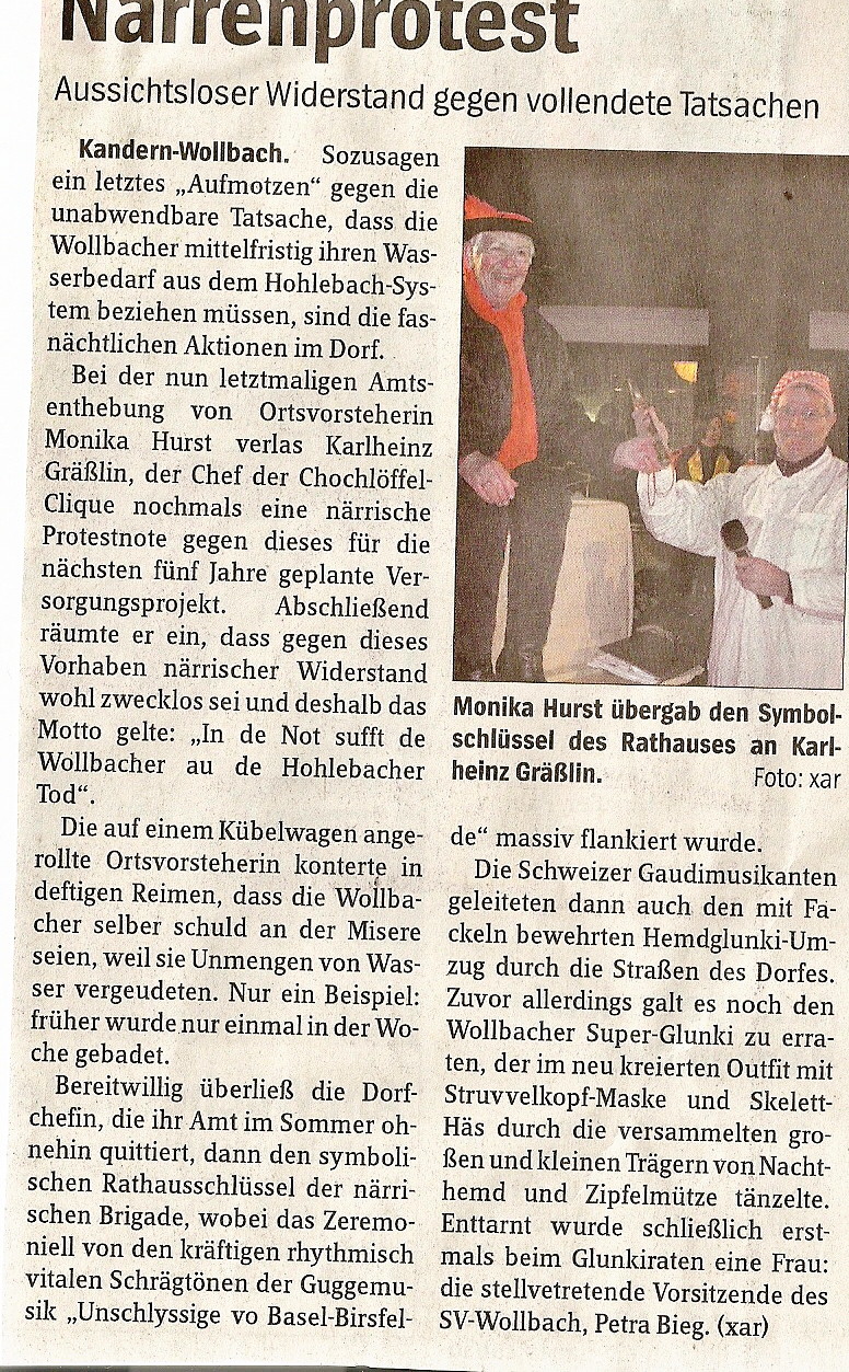 Bericht in der Badischen Zeitung vom 18.02.2012 zu unserem Hemdglunki